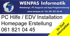 Wenpas Informatik Webdesign, App Entwicklung und PC Support +41 61 821 04 45 |